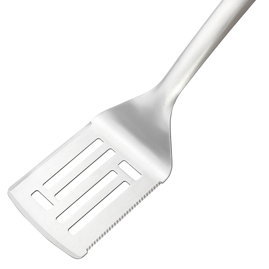 - Лопатка и щипцы с функциональным дизайном делают приготовление блюд на открытом огне приятным и безопасным, а эргономичная щетка помогает качественно очистить посуду и инструменты после использования.