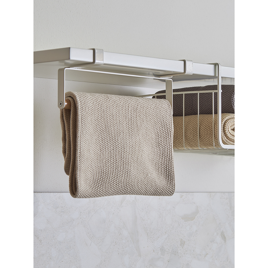 - Полотенца бежевого и темно-серого цвета прекрасно вписываются в любой интерьер, а их вязаная текстура добавляет в оформление нотку утонченности.