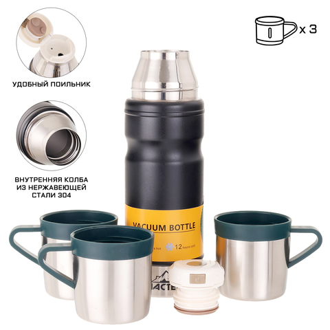 Изготовлен из высококачественной нержавеющей стали с двойными стенками, что обеспечивает длительное сохранение тепла вашего кофе или чая до 12 часов, а его противоударный корпус, выполненный в виде стандартной бутылки, делает его прочным и стильным. Термос оснащён поильником, что позволяет легко и удобно наливать ваш любимый напиток, поддерживая его температуру и предотвращая проливы. Нельзя мыть в посудомоечной машине и нагревать в микроволновой печи.